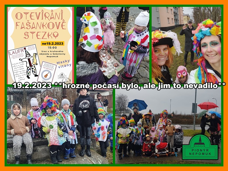 I přes nepřízeň počasí v neděli 19.2.2023 se Vlčata vypravila na Fašank a snad založila novou tradici masopustní vycházek. Děkujeme děvčatům Tereze a Karolině, že tuo akci připravily a neodradilo je ani deštivé počasí.