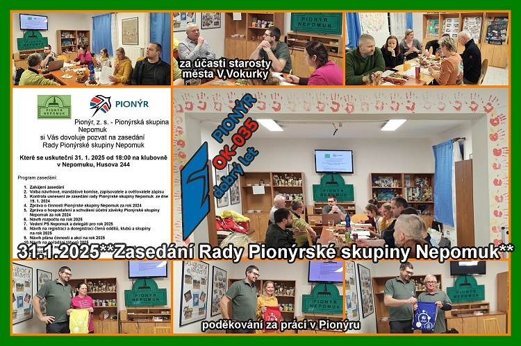 V Nepomuku se hodnotilo. V pátek 31.1.2025 se uskutečnilo jednání Rady Pionýrské skupiny v Nepomuku za přítomnosti starosty města V.Vokurky. Na naší klubovně se sešli zástupci oddílů a táborových klubů a projednali výroční zprávu o činnosti za rok 2024, hospodaření, návrh rozpočtu, plán činnosti a návrh akcí na rok 2025. Zvolili vedení skupiny a delegáty. Několik údajů z naší činnosti, připravili jsme sedm letních táborových běhů, tři příměstské tábory, na těchto táborech bylo celkem 458 dětí. Uskutečnili jsme 42 zájmových akcí zejména víkendových pobytů, sportovních turnajů a výprav za poznáním. Na táborové základně jsme odpracovali bezpočet brigádnických hodin, vybudovali jsme nový septik a vrt studny, natřeli jsme střechy všech chat. Většina těchto zájmových akcí je zařazena i do plánu na letošní rok. Nebude tam chybět i výstava k 35. výročí obnoveného Pionýra v Nepomuku. Na závěr jednání poděkoval vedoucí skupiny Václav Horník všem za aktivní přístup k organizaci a předal pionýrské dárky.*MD