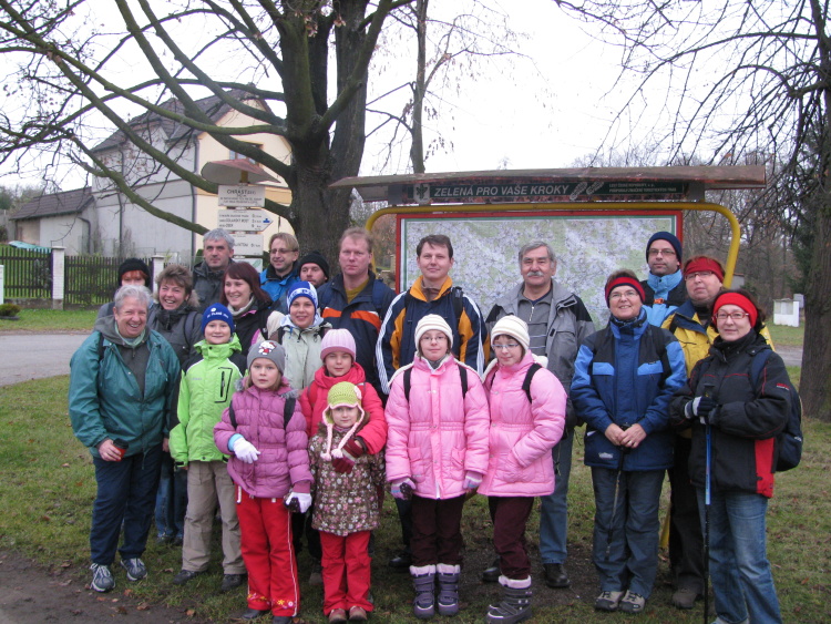 Sobotní  trochu mrazivé ráno, ale už bez mlhy a větru. Do rychlíku nasedlo 22 pochodníků,  přestup v Plzni na Rokycany a za chvilku jsme byli v Chrástu u rozcestníku před nádražím. Trasu jsme měli naplánovanou na deset kilometrů po naučné stezce Chrást. První zastavení bylo u památníčku Hurvínka a loutko herce J.Skupy, který se v Chrástu narodil. Postupně jsme prošli okolo devíti tabulí, kde jsme se seznamovali s historií, současností a s přírodou okolí Chrástu. Na panelech jsem viděli zvířata, které známe z lesa a polí. Překvapili nás však živí pštrosové. Za necelé tři hodinky jsme došli zpět na náměstí a zašli jsme do příjemné cukrárny na zákusek a čaj. To už byl kousek do cíle našeho putování v sále Lidového domu. Odměnou byl pamětní list ze setkání a  notýsek se doplnil o další razítka z našeho putování. Vystoupil zde folklorní soubor  z Chrástu, povídalo se a také se hodnotilo. Děkovný list za celoroční práci v turistice obdrželi také naši pionýrští vedoucí A.Březáková a M.Dvořák. To už byl čas se rozběhnout na náš zpáteční vlak do Nepomuku. A kam se vypravíme příště? Bude to předvánoční akce, pojedeme do Plzně do ZOO podívat se jak tráví zvířátka  vánoce. Bude tam také pionýrská krajská  výstavka rukodělných prací pod názvem Sedmikvítek. Na ní budou vystaveny i výtvarné práce pionýrů z našeho oddílu Pusík. Zajdeme na náměstí na vánoční jarmak a vystoupáme na kostelní věž. Pojedete také s námi??