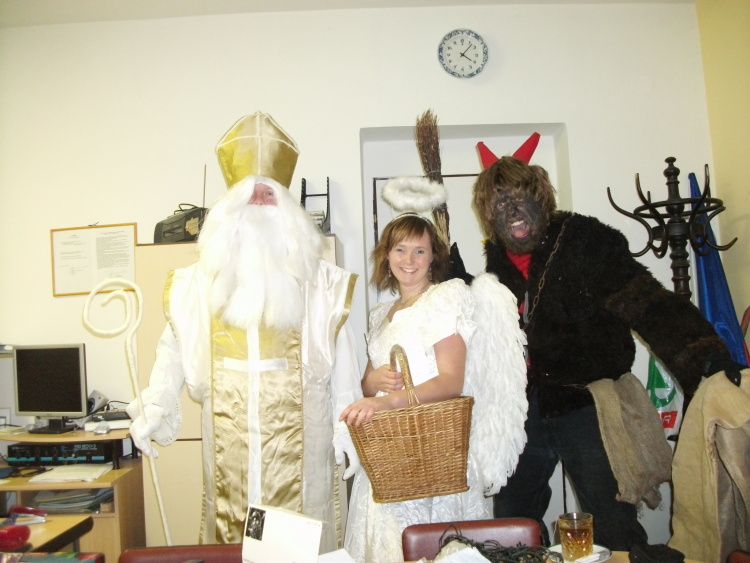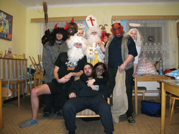 5.12.2011 Na nadílku od Mikuláše se velmi těšily děti po celém Nepomuku , ale také tři party pionýrských mikulášů. Odpoledne kolem čtvrté se sešli na klubovně, kde po namaskování a úpravě kostýmů vyrazili do města. Roznášeli dárečky, ale u těch zlobivých také slzičky. Nezapomněli také zajít do Dětského domova rozdat cukroví. Náš Mikuláš s andělen a čertem byl už v sobotu také na Vánoční besídce v Třebčicích a ještě večer také rozdával dárečky v sále hotelu U Zeleného stromu v Nepomuku. *MD