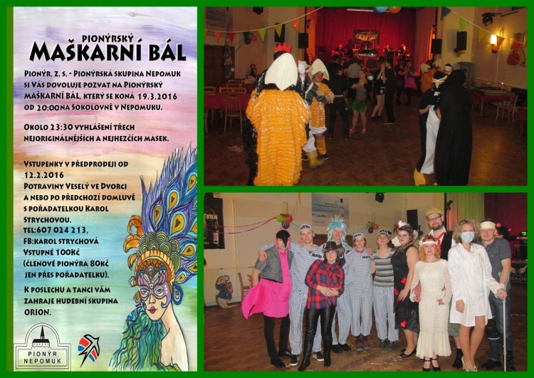 Dne 19.3.2016 byl ve znamení masek a maškarního plesání. Napřed bylo zapotřebí během odpoledne řádně utahat všechny ratolesti, aby večer mohl patřit dospělým. Dětského maškarního plesu se zúčastnilo na 40 dětí v nejrůznějších maskách, z nichž nejčetnější byla maska Elsy z pohádky Ledové království. Věříme, že si děti užily i doprovodné soutěže, zejména balonkového hada.
