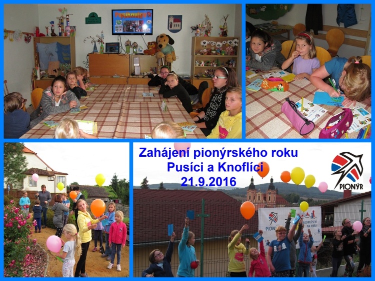 Nový pionýrský rok byl zahájen u pionýrských oddílů Pusík a Knoflíci ve středu 21.9.2016 na klubovně. Míra připomněl základní informace o naší organizaci, Alena s Monikou hovořili o výtvarné práci a akcích obou oddílů. Promítli jsme si prezentace fotografií z našich schůzek v loňském roce. Pak už jsme začali tvořit. Prvním úkolem bylo vytvořit přáníčko, na kterém bylo napsáno nebo namalováno, co chceme v naších oddílech dělat. Přáníčka jsme navěsili na balónky a vypustili jsme je z parčíku před klubovnou. Dlouho jsme je sledovali jak letí. Určitě se nám naše přáníčka vyplní. Kdo nestihnul přijít na první schůzku určitě přijde na příští a ta bude 5.10.2016.( Příští středa jsou školní prázdniny). Připravujeme také nový oddíl her, soutěží a výprav pro děti od 2. do 5.třídy, scházet se bude zřejmě v úterý od 16 h. Ještě dáme vědět. Přihlaste se nám pokud máte zájem o zapojení do našich oddílů. Odkaz na fotky po rozkliknutí nadpisu.
