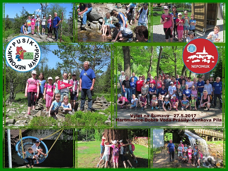 Parta Pusíkovců se vypravila na zájezd na Šumavu, který připravil KČT Nepomuk. První zastávka byla v Hartmanicích, prohlédli jsme si městečko. Další zastavení bylo na Dobré Vodě, kde jsme viděli nádherný sklený oltář a předtím jsme ještě vystoupali na Vintířovu skálu. Zabrat nám dala cesta ze Slunečné na Prášilské jezero. Vycachtání nohou v jezeře bylo osvěžující a cesta do Prášil nám pak ubíhala, jenom se za námi prášilo. Nádherné dětské hřiště, zmrzlina a ještě jedna zastávka na Čeňkově Pile u soutok šumavských řek. Byl to moc pěkný zájezd , nádherné počasí a ušlapali jsme 14 km.