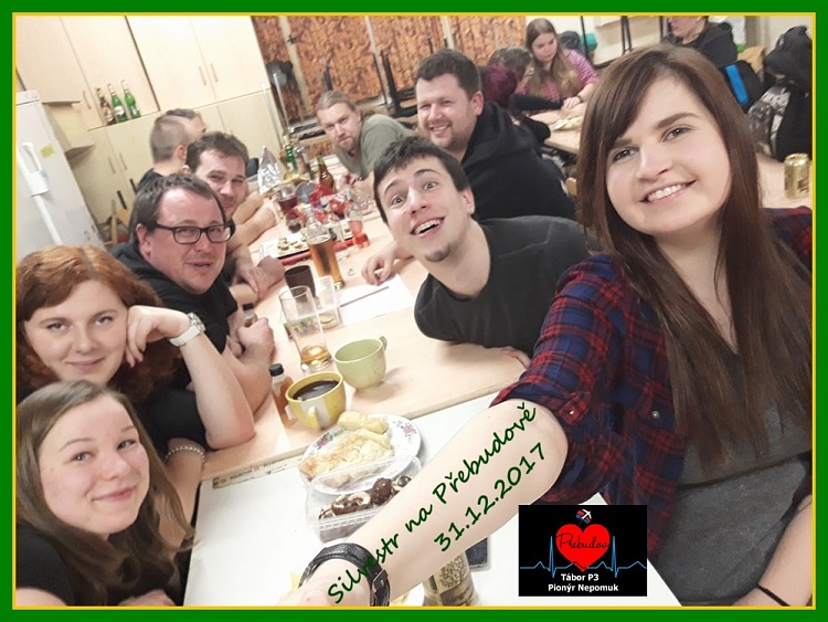 Dne 31. 12. 2017 se uskutečnila silvestrovská oslava na táborové základně v Přebudově konaná skupinou P3. Akce se zúčastnilo přes 20 lidí, kteří na své oblíbené místo přijeli již kolem páté hodiny. Program večera byl pestrý – hrály se deskové hry, nejlepší společenské hry z Partičky a samozřejmě jsme nezapomněli ani na tradiční táborové hry. O půlnoci došlo samozřejmě na ohňostroj, novoroční polibek a nezapomněli jsme ani na pár ještě vánočních zvyků, jako například líbání pod jmelím. Silvestr jsme si moc užili, a doufáme, že se jej budeme na Přebudově moci zúčastnit i v roce 2019.