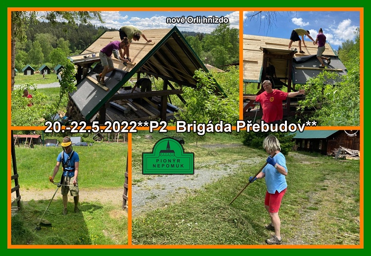 Již pár let se snažíme zvelebovat i mimo velkou víkendovou brigádu naší oblíbenou táborovou základnu v Přebudově. Na letošní P2 brigádě, která se nám kryla s Dračím víkendem, už máme málo víkendů k dispozici, ale vešli jsme se všichni, co chtěli. Dokončili jsme Orlí hnízdo, snad se líbí, jako nám všem. Dále jsme trochu začali vyklízet kancelář, sekali trávu, natírali slepičárnu. Tak zas na nějaké makačce.**Mejla