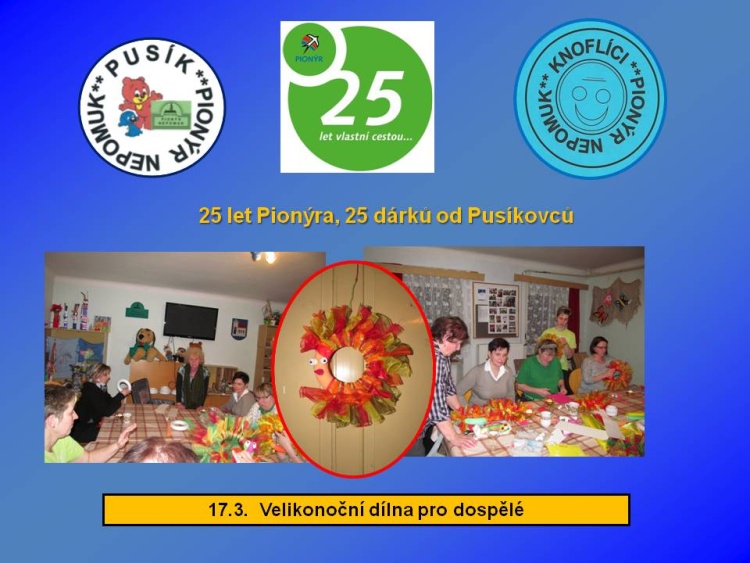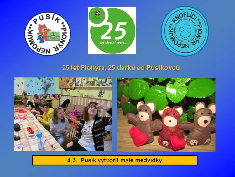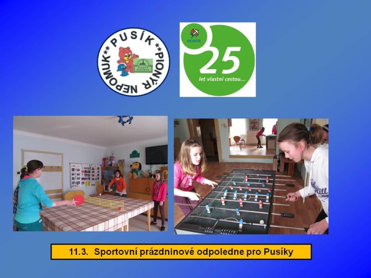 Naše dětská organizace Pionýr připravuje a organizuje volný čas dětem a dospělákům v malém městečku jižně od Plzně.