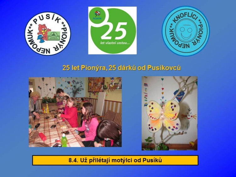 Naše dětská organizace Pionýr připravuje a organizuje volný čas dětem a dospělákům v malém městečku jižně od Plzně.